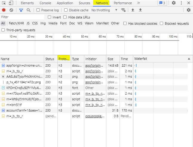 윈도우에서 f12를 누르면 어떤 프로토콜을 사용하는 지를 알 수 있다.